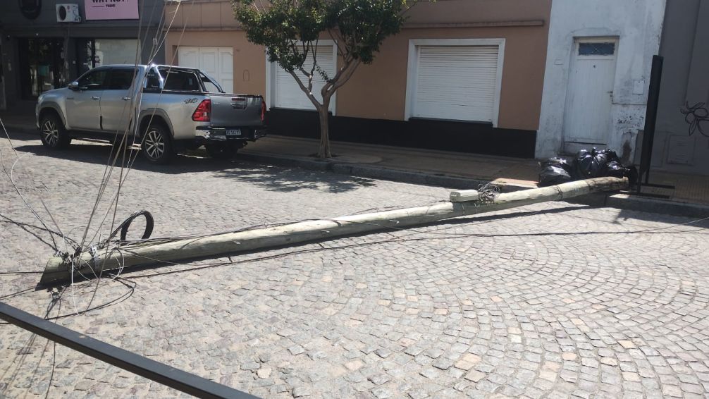 16 de noviembre de 2025 - La acción del viento provocó la caída de un poste de luz, que interrumpe el paso del vehículos. leer mas