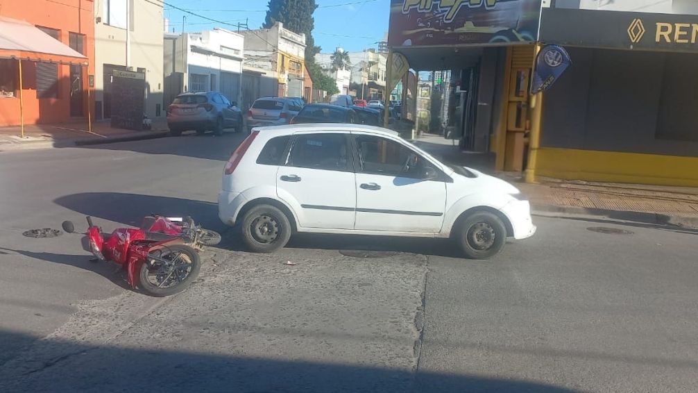 Este lunes, personal policial acudió a la intersección de Pellegrini y Rodríguez tras un accidente de tránsito entre un automóvil y una motocicleta.