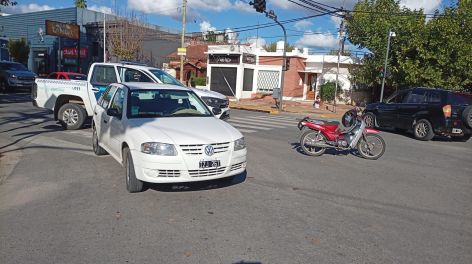 Personal policial acudió al lugar y constató la colisión entre un Volkswagen Gol (patente IZJ267), conducido por una mujer de apellido Rodríguez, y una moto Imsa IM110, al mando de un hombre de apellido Plaza.