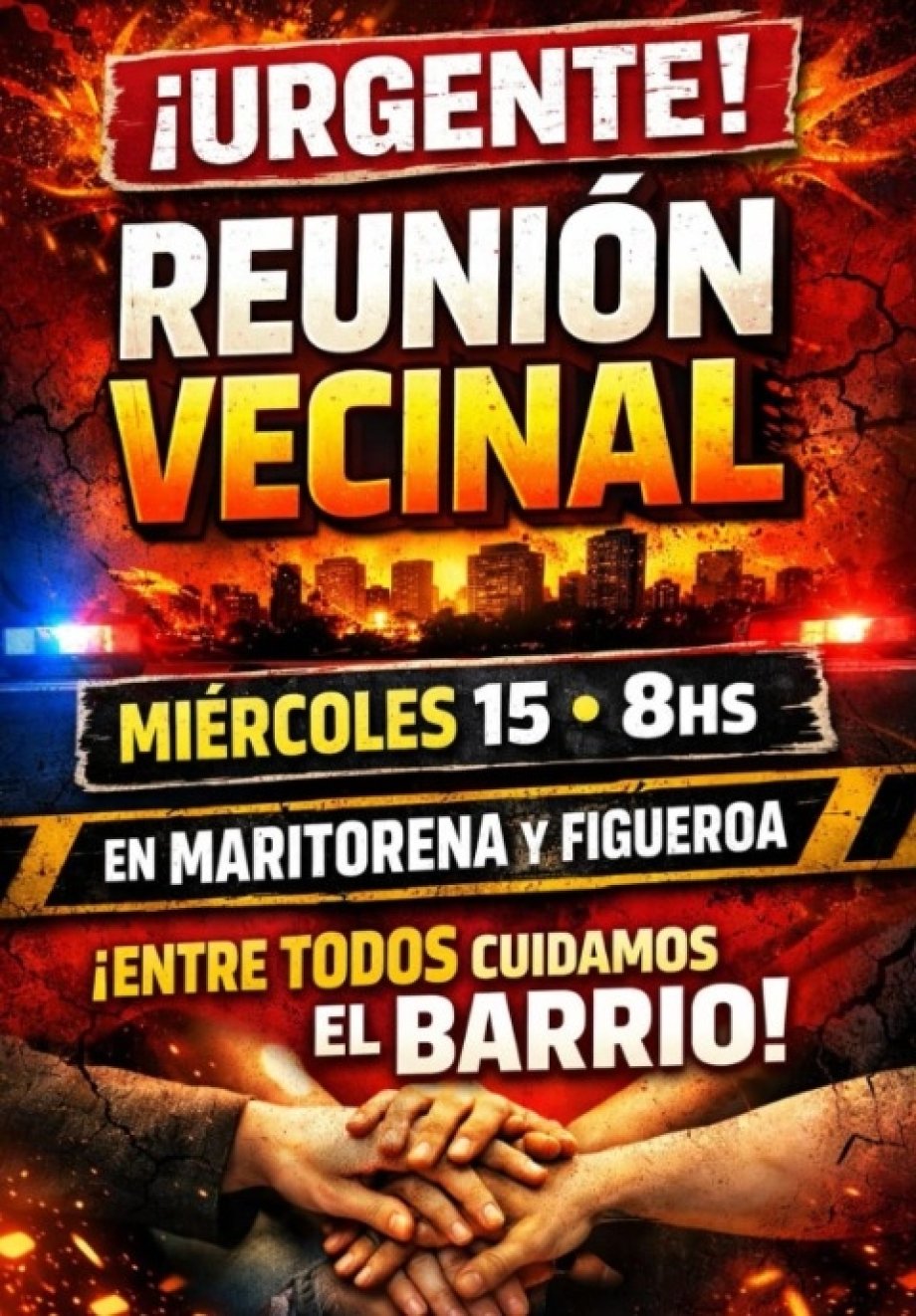 Vecinos de Maritorena y Figueroa llaman a reunirse este miércoles desde las 8 ante los reiterados hechos de inseguridad.