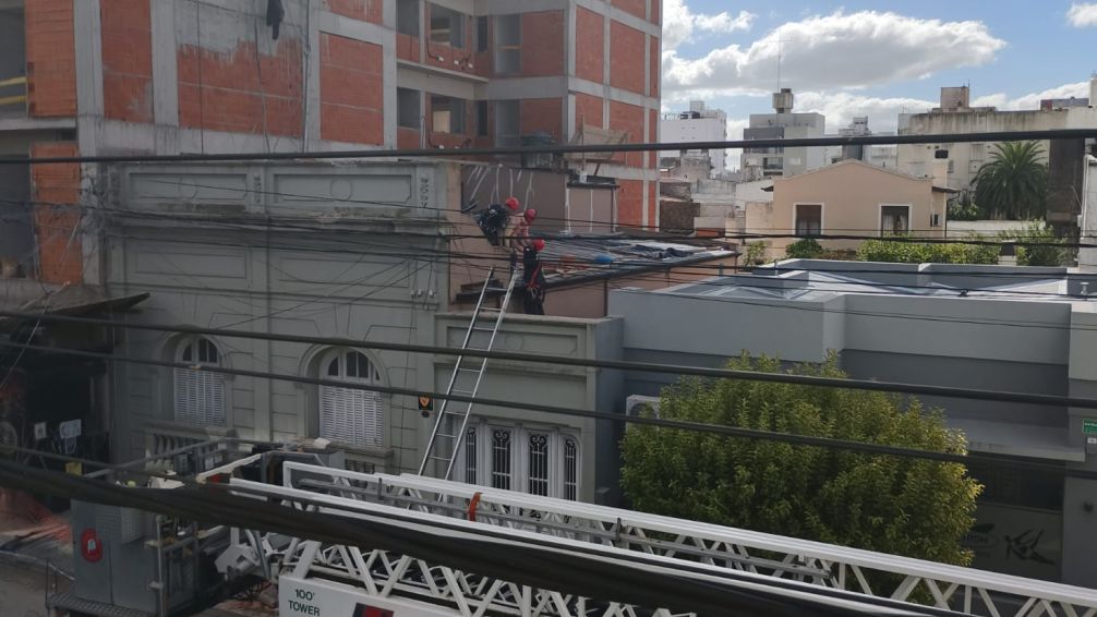 El segundo operario, en tanto, logró quedar sujeto por el sistema de seguridad, al quedar atrapado entre una estructura del edificio y la cuerda de acero que lo sostenía. Fue asistido en el lugar y, de acuerdo a los primeros indicios, sus lesiones no serían de gravedad.