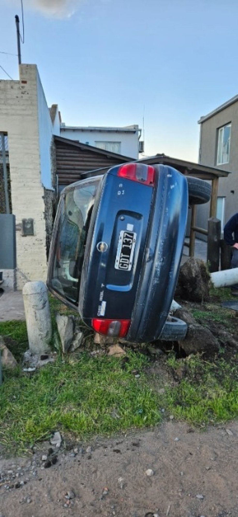 El hecho ocurrió en Larrea 602, donde el conductor de un Chevrolet Corsa (patente colocada GDT137) perdió el control de su vehículo, volcó y chocó contra el frente de una vivienda.